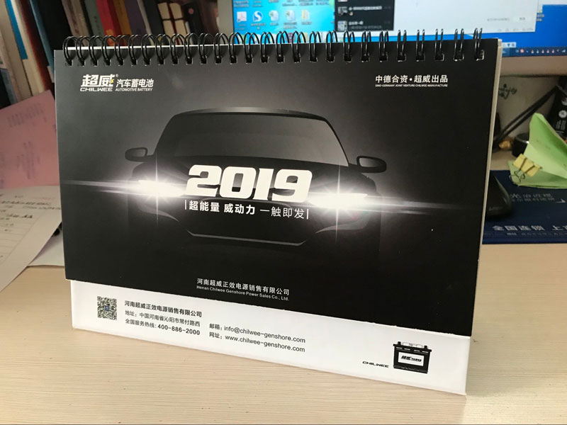 鄭州印刷廠制作的河南超威正效電源公司臺(tái)歷